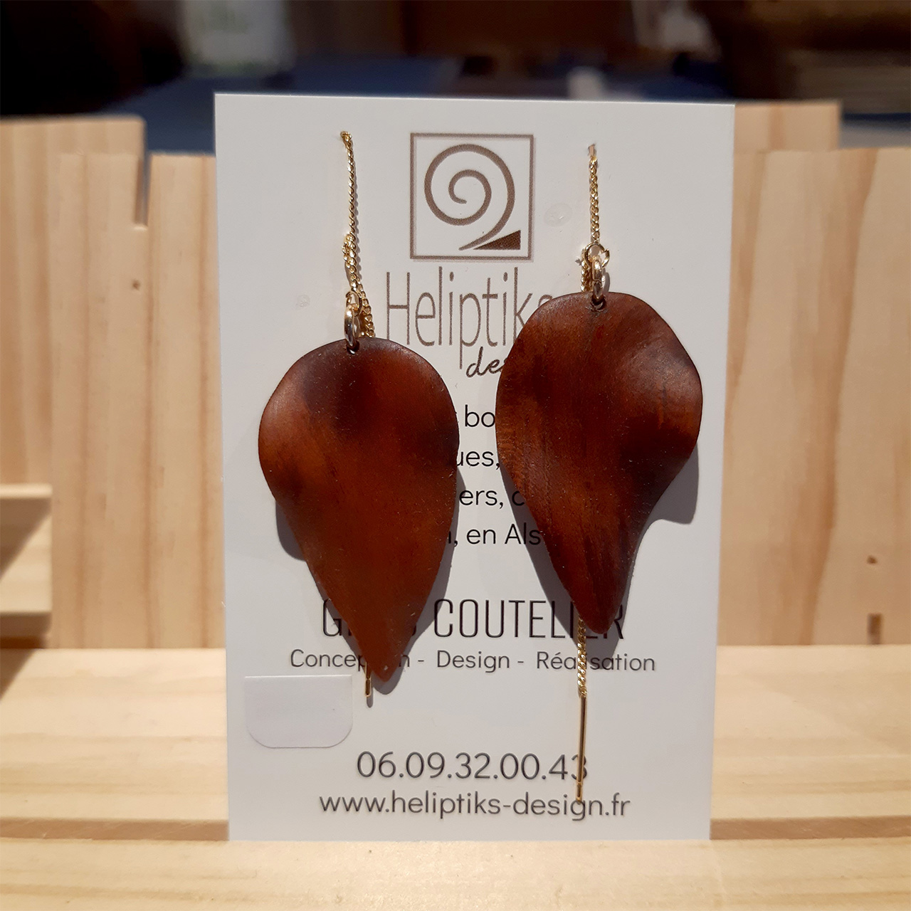 Boucles d’oreilles – Feuilles torsadées – Prunier